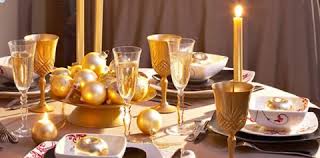 El dorado es un color usado para recibir el año nuevo pero también puede ser usado en la decoración navideña , la mesa luce muy linda en este color, puedes usar el dorado en tus platos, cubiertos, copas, velas, adornos de navidad, manteles , etc. ya depende de ti.
